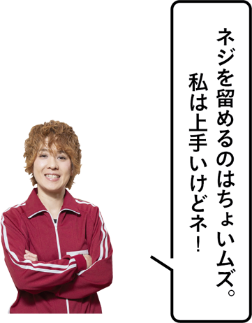 タッカーを使って片方の横木に、端を折って二重にした布を留める。その後、先ほど穴をあけた部分が一直線上になるように脚を組み合わせ、そこにボルトを通して固定。