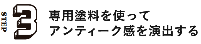 使い込まれた風合いを出すために、専用の塗料を缶の角やでっぱりがある部分を中心にサッとほうきで掃くようにペイントしていきます。毛が硬めのハケを使うと古びた味わいが出やすくなります。
