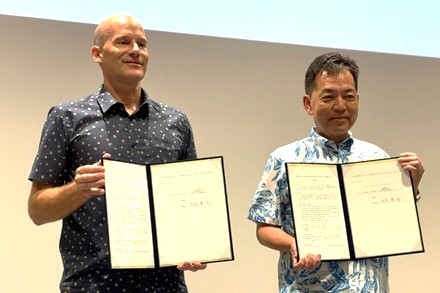 Minister Asao participated in the Signing Ceremony for the Agreement of Cooperation with Patagonia, Inc. Together with Mr. Marty Pomphrey, General Manager of Patagonia Japan, he signed the "Agreement of Cooperation Concerning Promotion of Satoumi Creation (Integrated Coastal Management) via Restoring Coastal Ecosystem from Ridge to Reef".