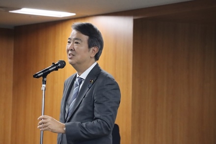 環境省職員に対して、浅尾前大臣は退任の挨拶、石原大臣は就任の挨拶を行いました。