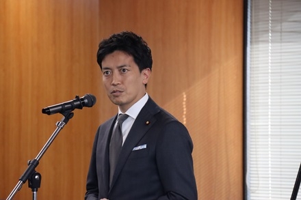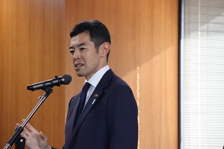 環境省職員に対して、中田前副大臣・小林前副大臣は退任の挨拶、辻󠄀副大臣・青山副大臣は就任の挨拶を行いました。