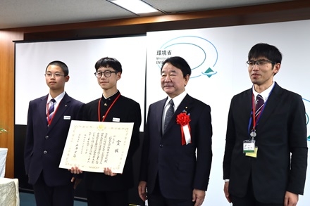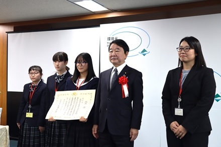 青山副大臣は、「第59回全国野生生物保護活動発表大会」に出席し、環境大臣賞受賞校に表彰状の授与を行いました。
