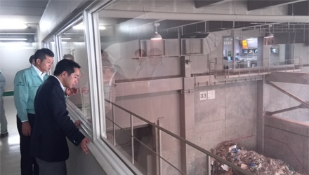 井上副大臣は、東日本大震災や伊豆大島大規模土砂災害により発生した災害廃棄物を受け入れ処理を行う民間事業者の施設を視察し、巨大災害発生時における廃棄物処理について、民間の担える役割について意見交換を行いました。