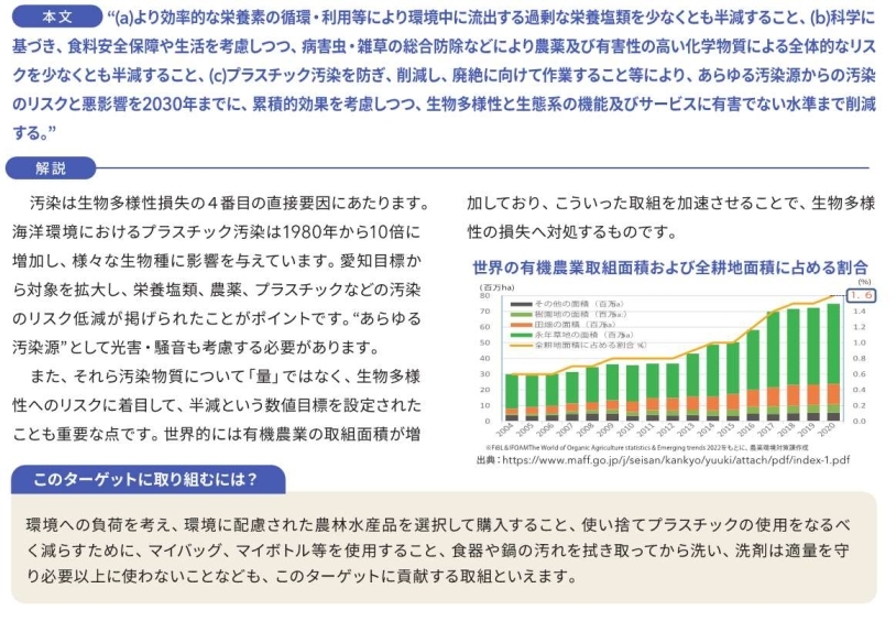 ターゲット7 汚染防止、栄養塩類の流出・農薬リスクの半減
