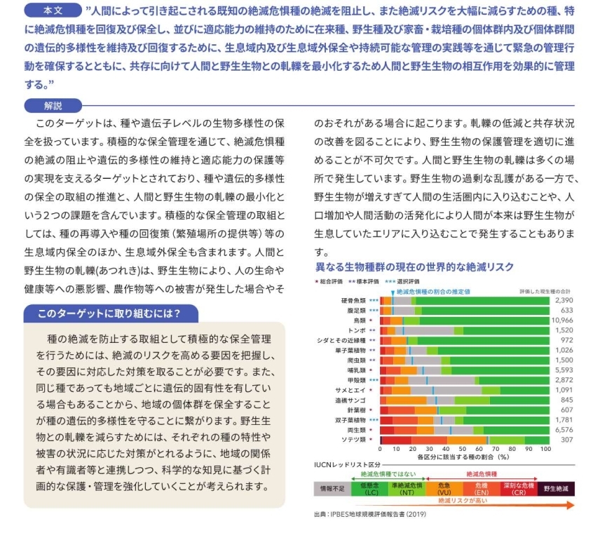 1.生物多様性への脅威を減らす (Reducing threats to biodiversity)