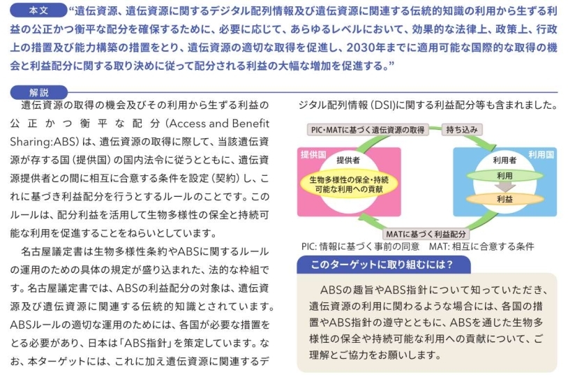 ターゲット13 公正、衡平な遺伝資源利益配分(ABS)