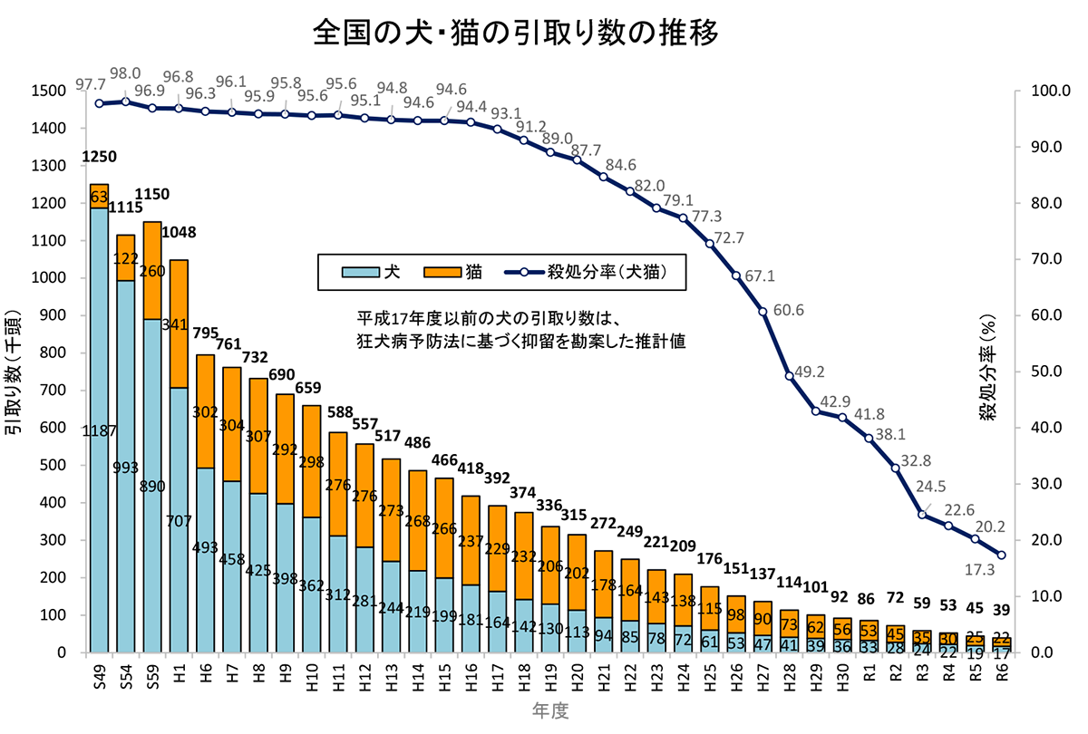 - 引取り数の所有者不明には、一部、県・市条例に基づく収容を含む。