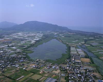 | 特徴 | 佐潟は新潟市の西の端に位置し、二つの池と周辺の低湿地からなる淡水湖です。かつては日本海とつながった汽水性の潟湖だったものが海から切り離され、砂丘の窪地に取り残された淡水湖で、国内最大の砂丘湖とも言われています。信濃川、阿賀野川河口の越後平野には多くの湖沼が点在し、毎年多くの水鳥が飛来しますが、特に冬でも凍結しない佐潟ではコハクチョウ、マガン、ヒシクイなどが多数越冬します。 | ||