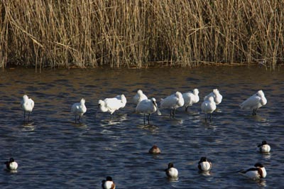 クロツラへラサギ <11月~4月>、セイタカシギ <春・秋>、オオバン、マガモ、ヒドリガモなどのカモ類 <10月~3月>、ツリスガラ <11月~3月>、カワセミ、ミサゴ <通年>