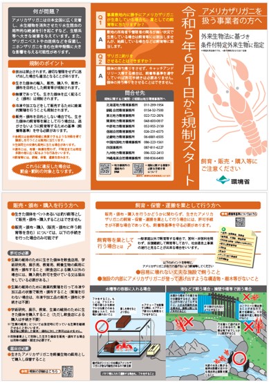 アカミミガメとアメリカザリガニについては、外来生物法第4条(飼養等*1の禁止)と第8条(譲渡し等*2の禁止)に関する規制の一部が適用除外となり、一般家庭等での飼養等や少数の相手への無償での譲渡し等については許可無しで行うことができます。ただし、業として飼養等する場合は飼養等基準を遵守する必要があります。