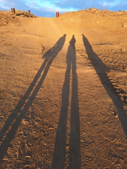 これは、12月28日、23時頃の写真です。23時でも、太陽は沈んでいません。地面からとても低いところに太陽があり、私たちの影はとてつもなく長くなります。
