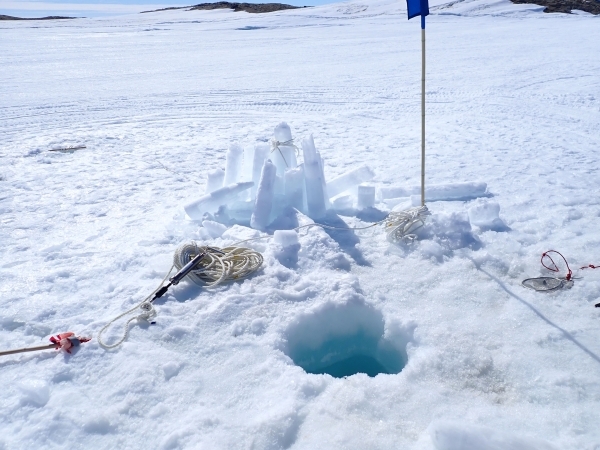 調査の日、この地点の氷の厚さは約3mありました。