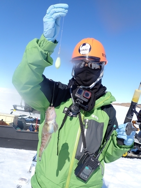 南極の凍った海での魚釣りでは、私が北海道に住んでいたときに夢中になった、凍った湖でのワカサギ釣りを思い出しました。