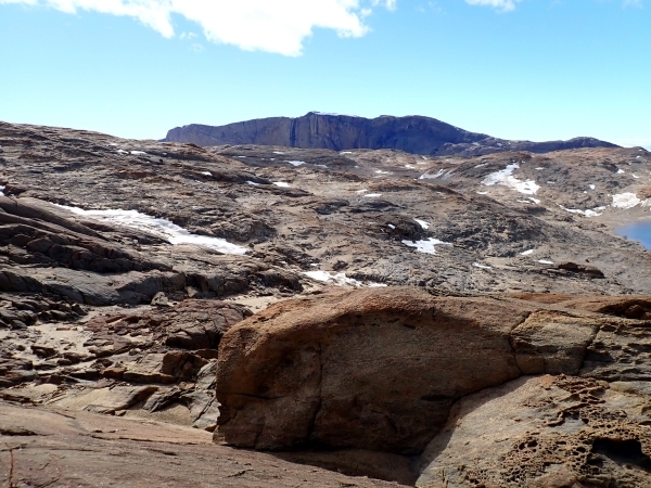 「南極」と聞くと、一面雪と氷の真っ白な白銀の世界をイメージされるかもしれませんが、ここスカルブスネスは一面茶色の世界で、昭和基地と同じように雲母がキラキラと舞っていました。