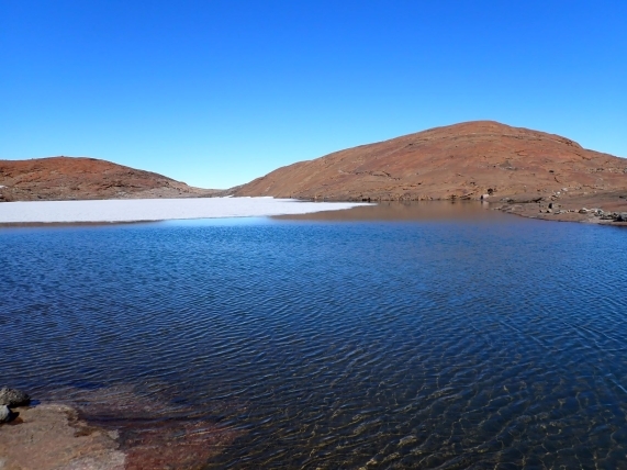 突如として、青々とした湖にたどり着き、想像より豊富な水量に驚きました。