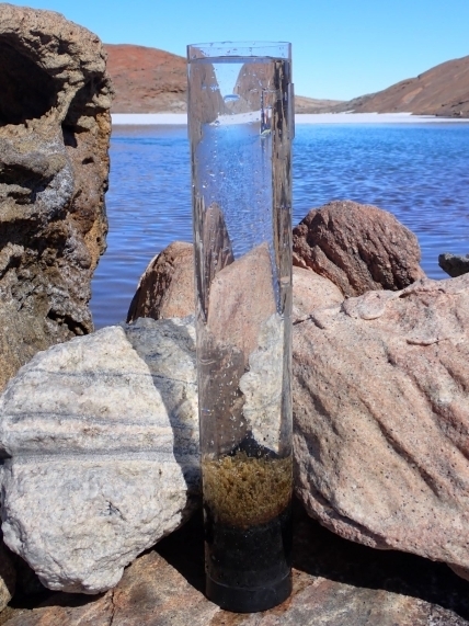 これらの堆積物を私たちが滞在している調査拠点に持ち帰り、日本から持ってきた顕微鏡を使って、どのような生き物がいるのか確認します。また、日本にも持ち帰り、遺伝子の解析を行って、どういった生き物が生息しているのかを詳しく調べます。