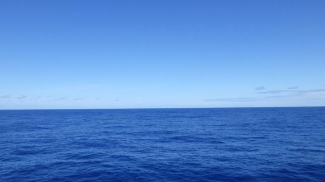 オーストラリアでは20℃以上あった外気温も徐々に低くなり、12月10日時点では、昼間でも14℃程度となりました。これまでは、甲板に出るときは半袖で快適だったのですが、今はフリースがないと肌寒く感じるほどです。
