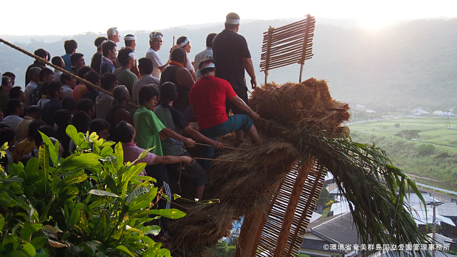 秋名集落では毎年旧暦の8月初丙の日に新節の行事として「ショチョガマ」と「平瀬マンカイ」を行います。来年の稲の豊作を祈願する国指定重要無形民俗文化財として指定されている祭事。