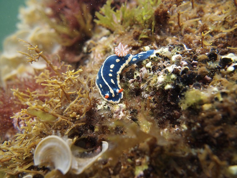 沿岸部では、対馬暖流の影響を受け、南方系の魚類や小動物を比較的多く見ることができます。また、ウミウシやアメフラシといった軟体動物も数多く生息しています。海の透明度が高い山陰海岸国立公園では、藻場の美しさも魅力のひとつであリ、すばらしい海中景観を楽しむことができます。