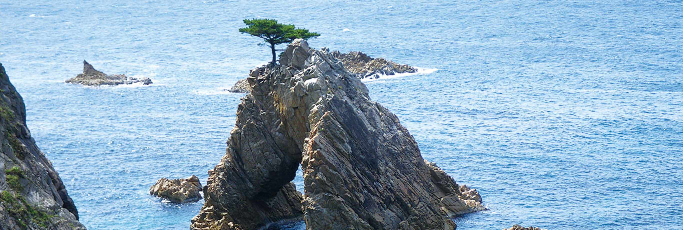 全長15kmの岩石海岸で、断崖絶壁と松を抱いた大小の島々や岬に囲まれた “白砂青松” の景勝地『浦富八景』と称賛されています。