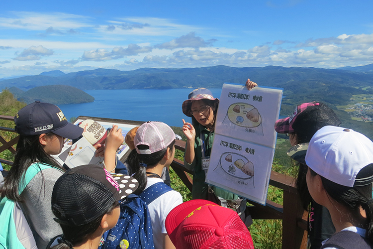 20世紀に4回噴火した有珠山では火山マイスターを認定し、減災教育ツアーを実施しています。