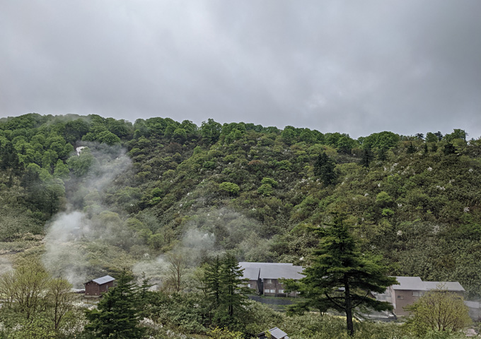 松川上流、標高850mほどの山あいにある温泉です。3軒の宿が静かに湯けむりを上げて出迎えてくれます。日本最古の地熱発電所があることでも知られています。
