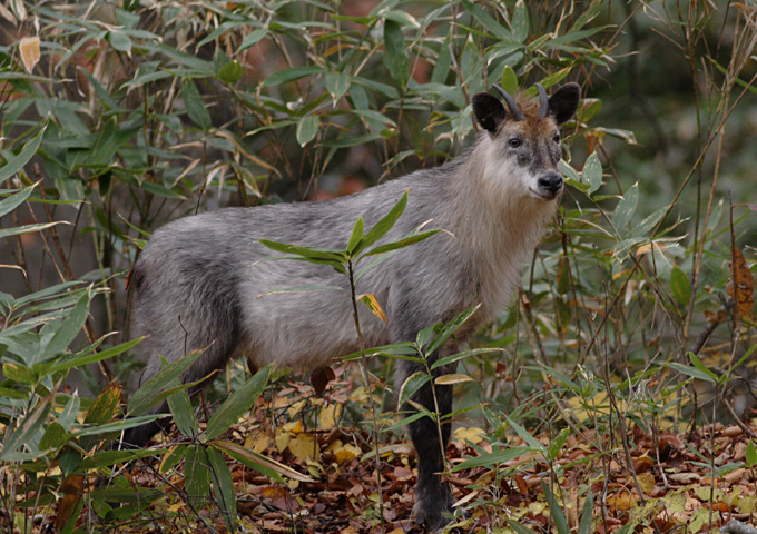 低山帯から亜高山帯の落葉広葉樹林や針広混交林に生息している、牛の仲間です。単独で行動し、群れをつくることはほとんどありません。国の特別天然記念物に指定されています。