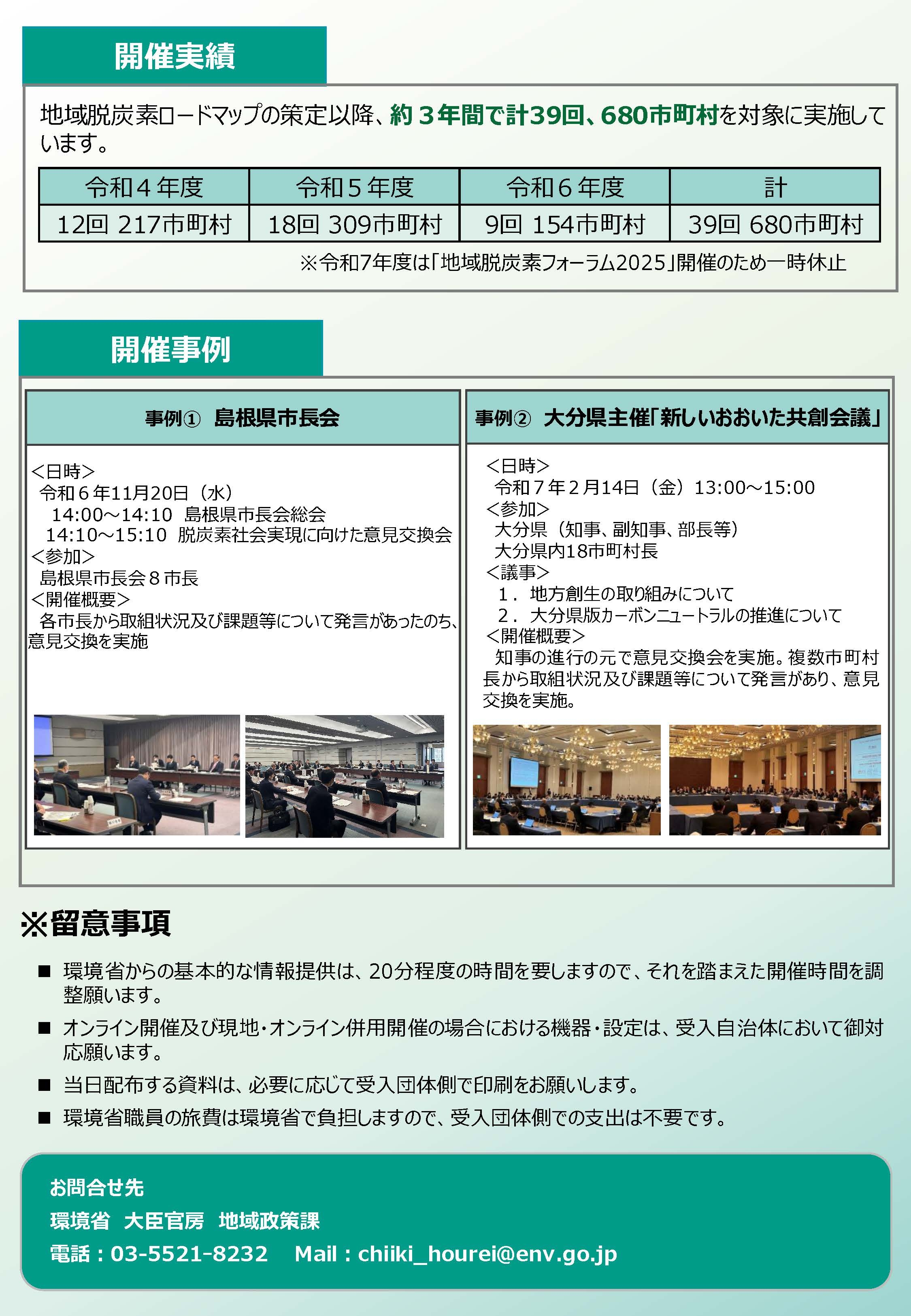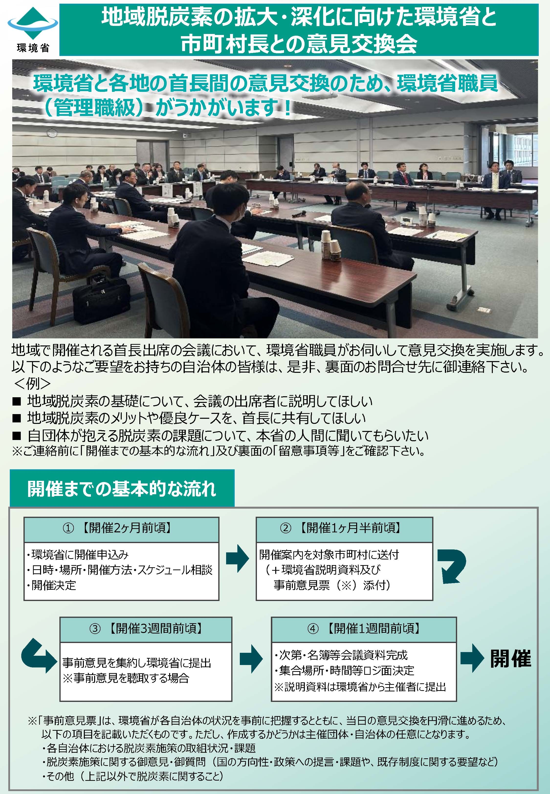 こうした中で、地方公共団体との緊密な連携の下で地域脱炭素の更なる推進を進めるため、令和4年度より継続して実施しております標記意見交換会について、希望の地方自治体を対象に募集を行います。