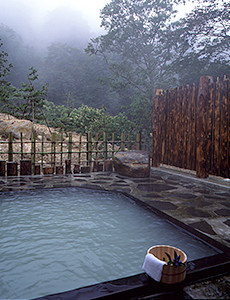 標高1230mの所にある高原の湯で、夏の間、福島県内で最も涼しい地として有名です。また、早朝に雲海が見える日もあり、湯浴み客の目を楽しませてくれます。鷲倉温泉には、2つの異なる泉質のお風呂があり、茶色がかった透明の酸性緑礬泉(りょくばんせん)は、飲泉所も設けられています。「薬湯」とも呼ばれ、古くから胃腸、神経痛の名湯として親しまれています。内湯と露天が楽しめて、湯の花が豊富な乳白色の弱硫黄泉は、お肌に優しい柔らかさがあります。
