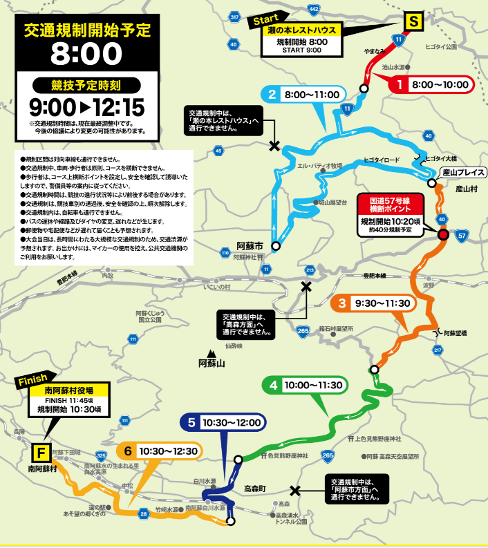 阿蘇くじゅう国立公園内においてもコース周辺を中心に交通規制が行われます。