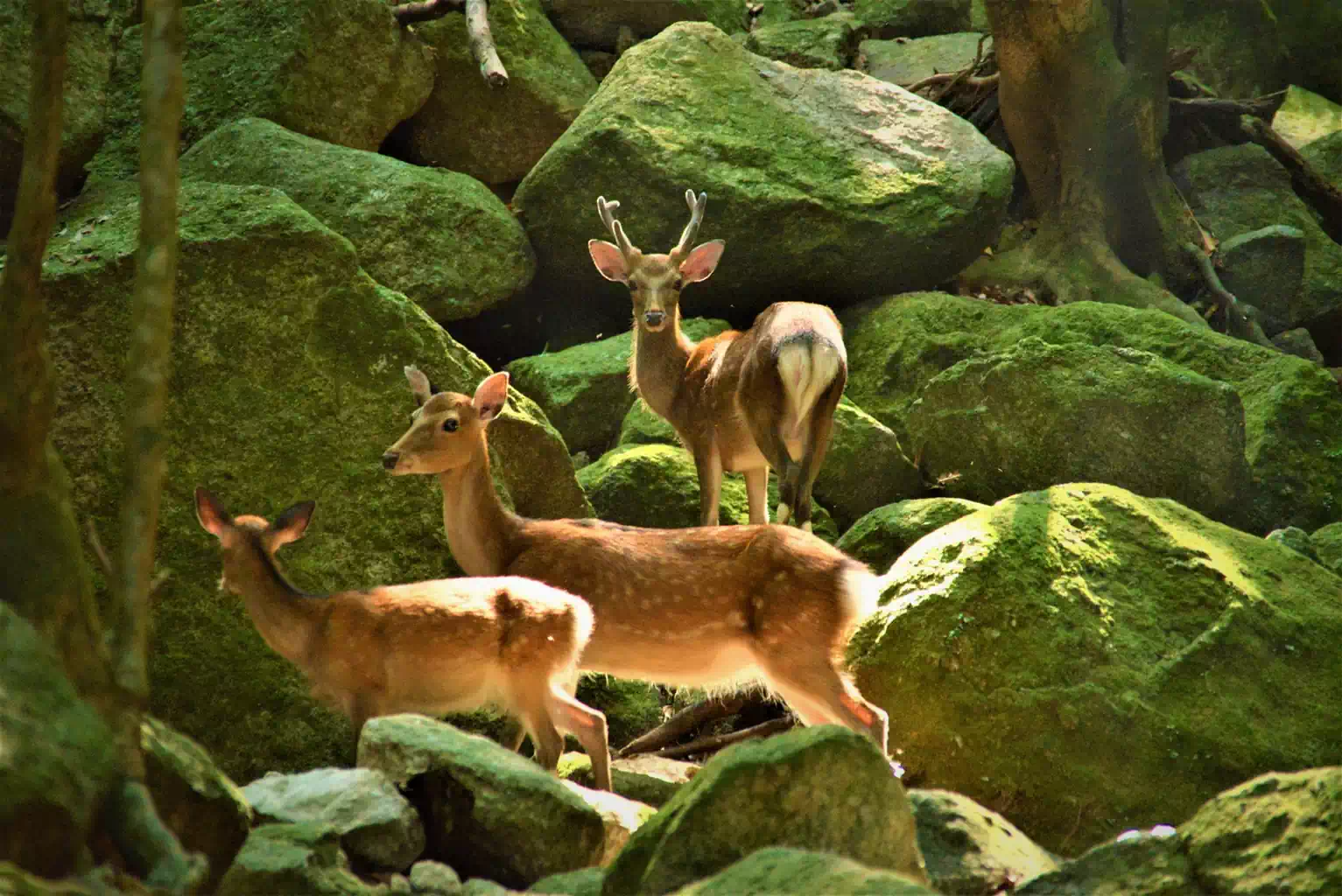 - 特に、子連れの母ザルや母ジカは神経質になっていますので、決して近づかないでください。