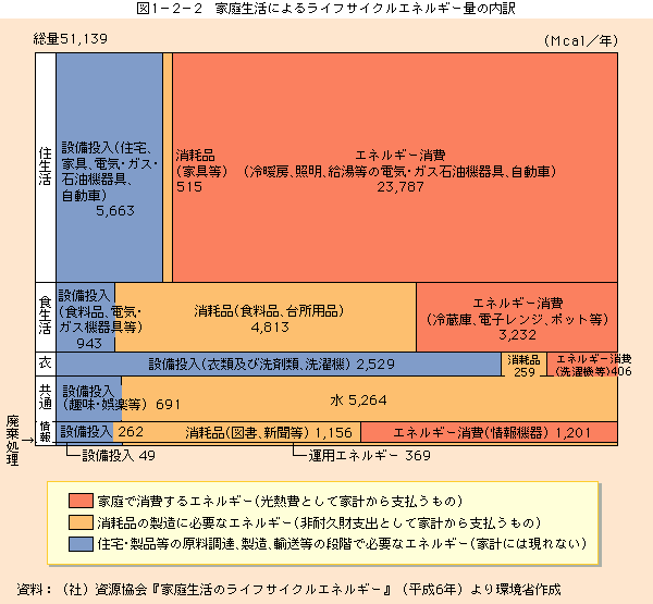 (1)ライフサイクルエネルギーで見た日常生活からの環境負荷