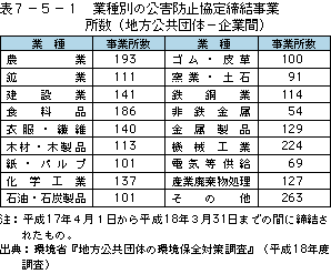 公害防止協定数は、約1,200件となっており、協定締結の事業所数を業種別に見ると表7-5-1のとおりとなっています。