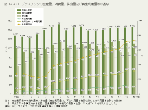 化石系循環資源の循環利用量の拡大及び最終処分量の削減に向けては、「容器包装に係る分別収集及び再商品化の促進等に関する法律」(容器包装リサイクル法)や、「特定家庭用機器再商品化法」(家電リサイクル法)を契機として、使用済製品の回収及びその再資源化技術の開発が一層促進されることなどが考えられます。