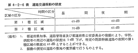都道府県知事は、指定地域内における道路交通振動が所定の限度(第4-2-6表)を超え、道路周辺の生活環境が著しく損なわれていると認めるときは、道路管理者に対し当該道路の部分につき道路交通振動の防止のため舗装、維持又は修繕の措置を採るべきことを要請しあるいは都道府県公安委員会に対し道路交通法の規定による措置を採るべきことを要請する。