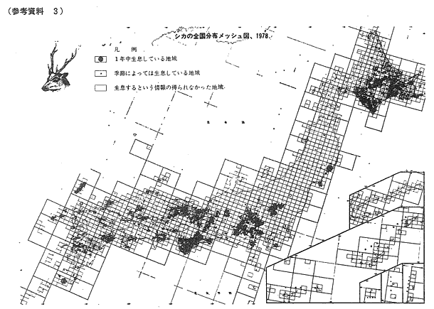 参考資料3 シカの全国分布メッシュ図、1978