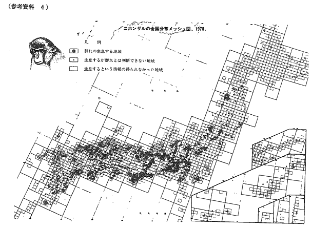参考資料4 ニホンザルの全国分布メッシュ図、1978