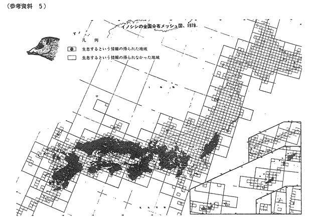 参考資料5 イノシシの全国分布メッシュ図、1978