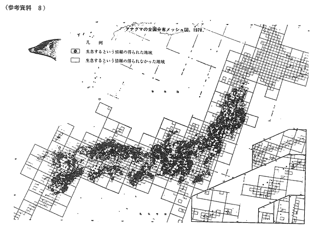 参考資料8 アナグマの全国分布メッシュ図、1978
