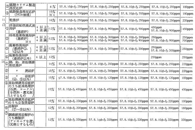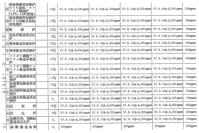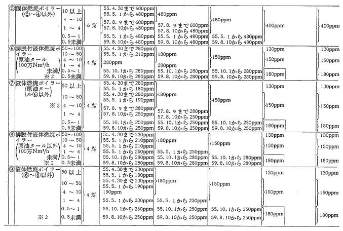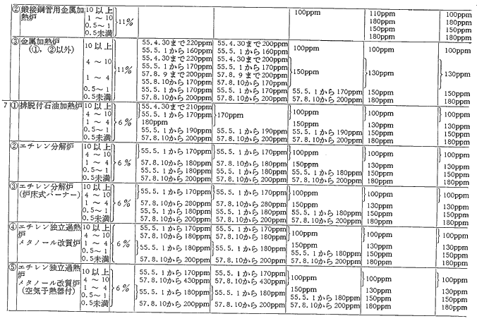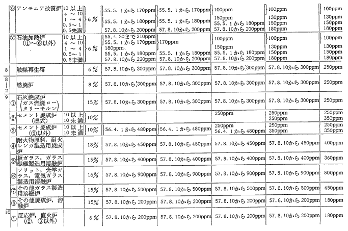 参考資料18 ばい煙発生施設に対する窒素酸化物排出基準一覧