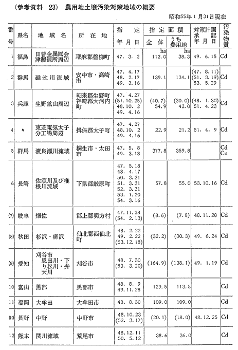 参考資料23 農用地土壌汚染対策地域の概要