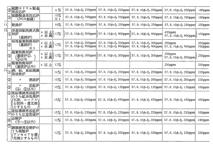 参考資料15 ばい煙発生施設に対する窒素酸化物排出基準一覧