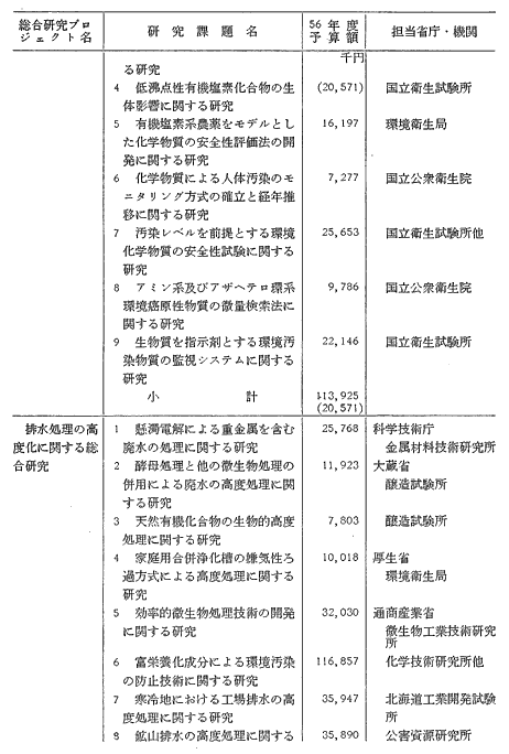 参考資料30 昭和56年度国立機関公害防止等試験研究費(一括計上)一覧表