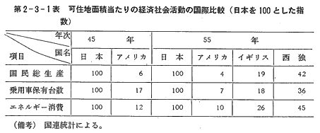 我が国では、既に欧米諸国と比べ第2-3-1表に示されるように過密な経済社会が形成され、このような状況の下で、多くの環境問題が生じている。特に大都市圏においては、人口と経済社会活動の集中により、地方圏に比べ環境保全上大きな問題が生じている。