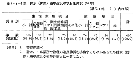 排水(排除)基準違反を違反項目の面からみると第7-2-4表のとおりで、大部分が生活環境項目に係る違反である。