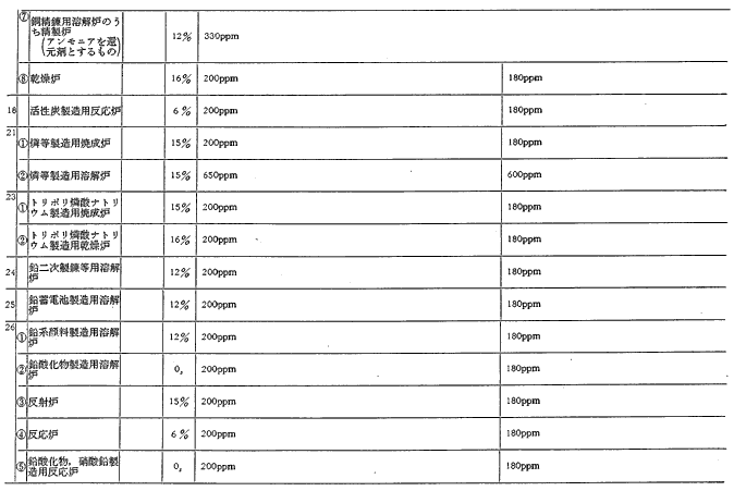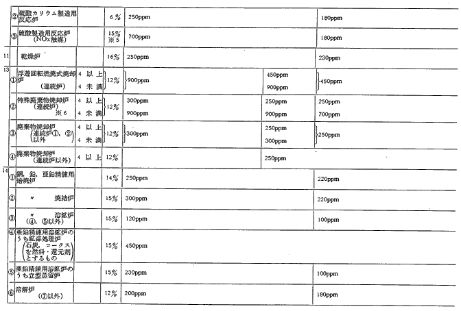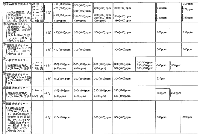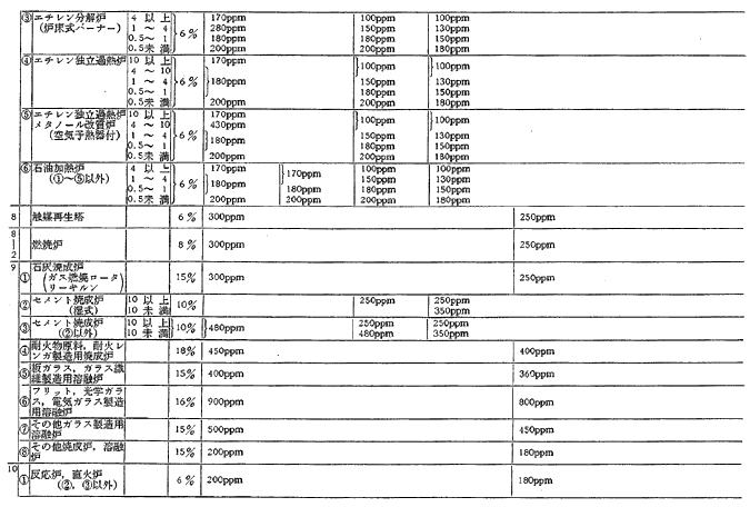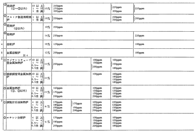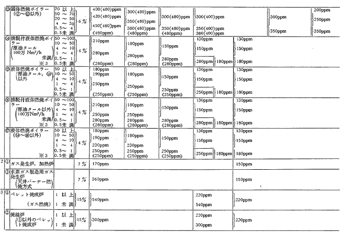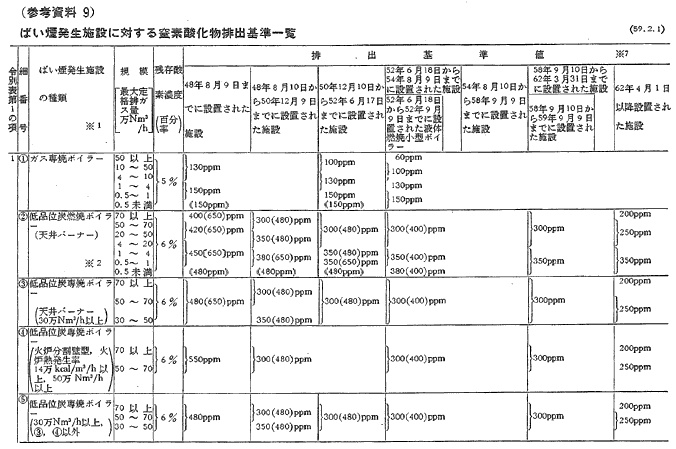 参考資料9 ばい煙発生施設に対する窒素酸化物排出基準一覧