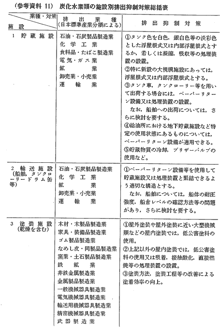 参考資料11 炭化水素類の施設別排出抑制対策総括表