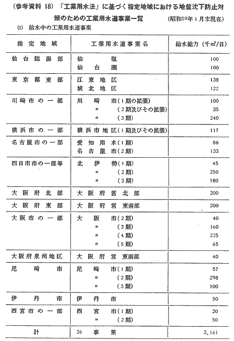 参考資料18 「工業用水法」に基づく指定地域における地盤沈下防止対策のための工業用水道事業一覧