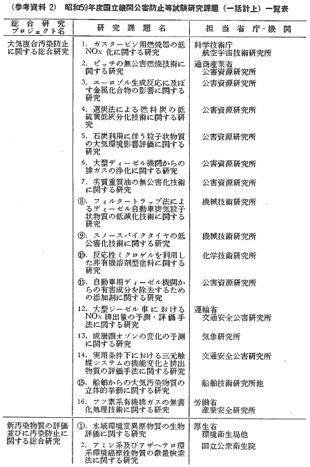 参考資料2 昭和59年度国立機関公害防止等試験研究課題(一括計上)一覧表