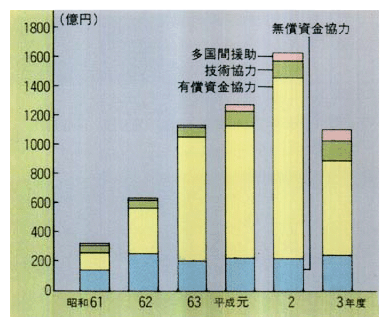 海外での環境対策への協力も、地球環境時代では、強力に進められるべき大事な取組です。日本は、環境分野で世界一の規模の政府開発援助を行っていますし、地球サミットではさらに、平成4年度からの5年間で合計9千億円から1兆円の環境分野での援助を行う方針を明らかにし、世界の支持を受けました。こうした資金供給の面に加え、今後は、協力の中身、すなわち、世界共有の科学的知見の充実、政府開発援助における環境への配慮、民間企業の海外進出での自主的な環境配慮と政府によるその後押し、人を通じた協力など、内容面、質の面でも国際的な協力関係を豊かなものにしていく必要があります。環境基本法案にもそうした観点からの規定が置かれています。